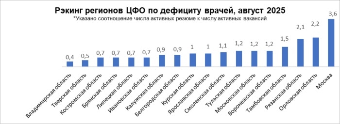 В Костромской области на одну врачебную вакансию приходится 0,7 соискателя. К такому выводу после изучения соотношения активных резюме и вакансий за август текущего года пришли аналитики российской платформы онлайн-рекрутинга hh.