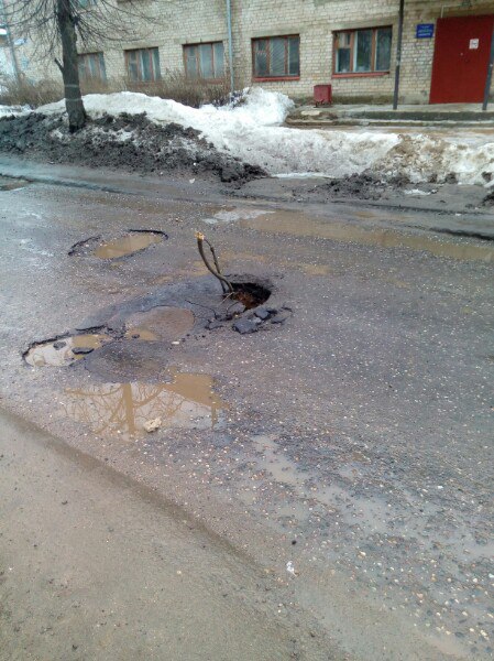 Фото ям на асфальте появляются в социальных сетях ежедневно. Автомобилисты делятся друг с другом информацией о том, где ненароком можно пробить и даже оставить колесо. А некоторые, особо заботливые, отмечают ямы особыми знаками, вставляют туда палки. Чтобы уж точно объехали. Так поступили автолюбители на улице Беговой. «Напротив УФСВНГ РФ яма глубиной примерно сантиметров 80, воткнули ветку. Водители, аккуратнее», — говорит автор фото.