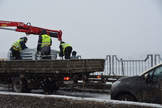 На одной из полос моста по направлению в Заволжье провели оперативные ремонтные работы