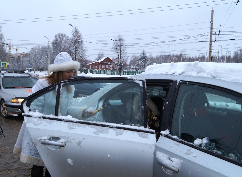 Костромская Снегурочка проверила, как родители перевозят детей в машинах