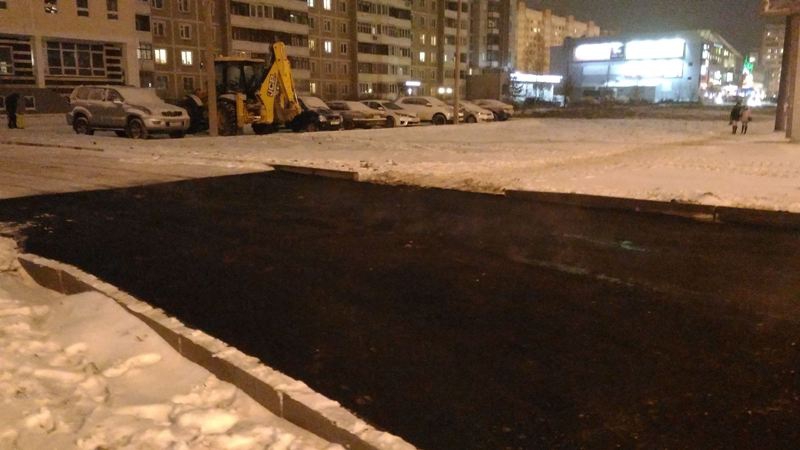 В Костроме дорожники укладывали асфальт прямо в снег